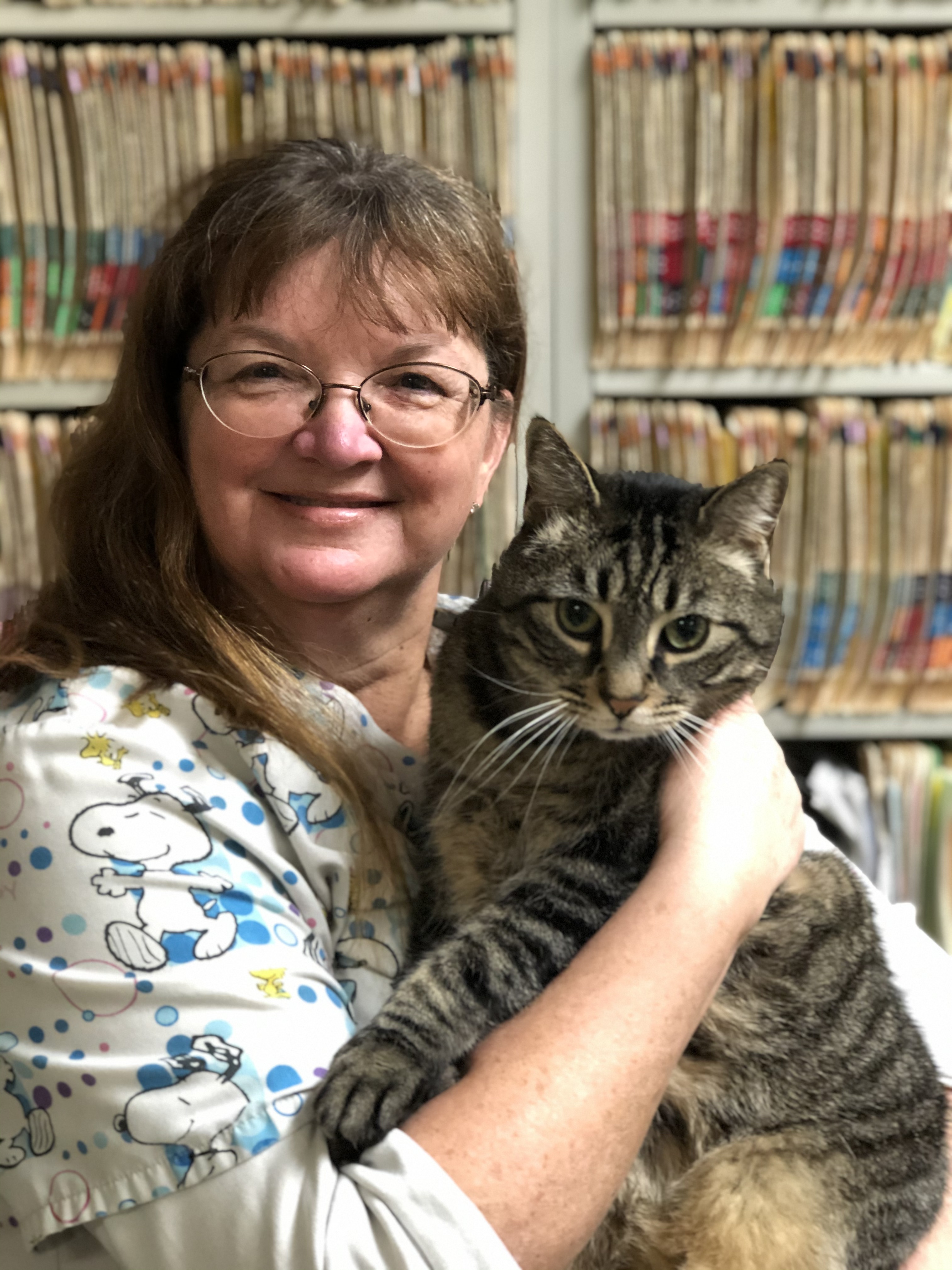 Ann Mullin Office Manager Ann has been at Palmyra Veterinary Hospital for over 20 years providing professional and compassionate care to all our clients . We are fortunate to have her. Ann runs a local cattle farm with her husband Stan and when she is not at the hospital you can find her at home on the farm tending to her animals there.